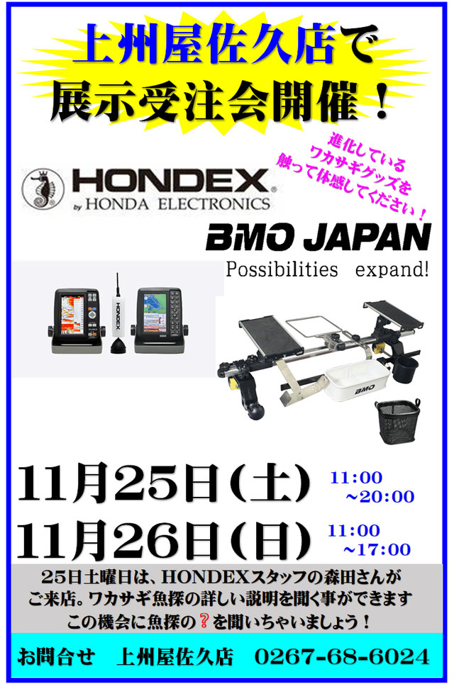 【佐久店】HONDEX & BMO JAPAN、ワカサギ用品・展示受注会!