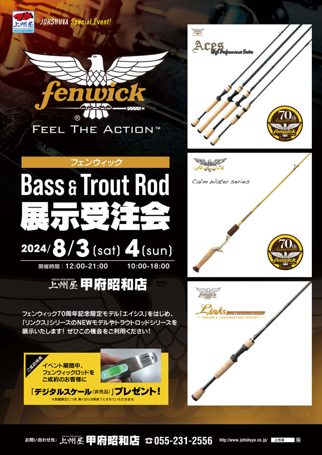 【甲府昭和店】フェンウィックBass&Troutロッド展示受注会!