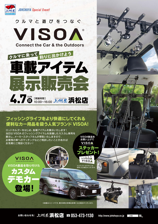 2024年4月7日(10:00~16:00、上州屋浜松店にてクルマと遊びをつなぐ車載ギア「VISOAシリーズの展示販売を開催します!