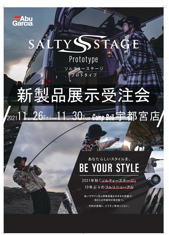 2021年11月26日(金)~30日(火)の5日間、キャンベル宇都宮店にてAbuGarcia|アブガルシアの新製品ロッド「ソルティーステージ プロトタイプ」の展示受注会を開催します!