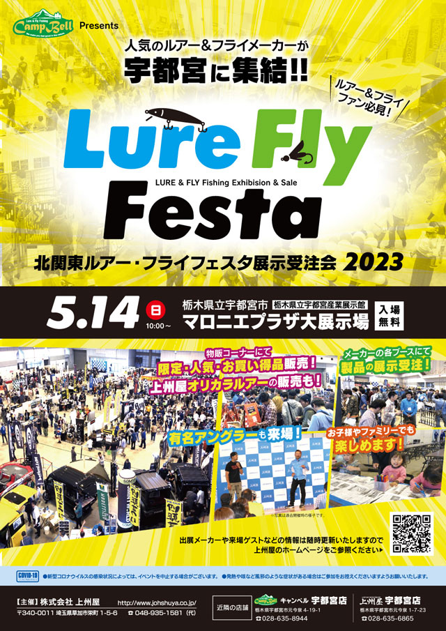 2023年5月14日(日)10:00~16:00(予定)、栃木県宇都宮市マロニエプラザ大展示場にて北関東ルアー・フライフェスタ展示受注会2023を開催します!
