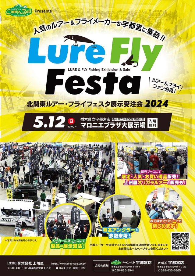 2024年5月12日(日)10:00~16:00(予定)、栃木県宇都宮市マロニエプラザ大展示場にて北関東ルアー・フライフェスタ展示受注会2024を開催します!