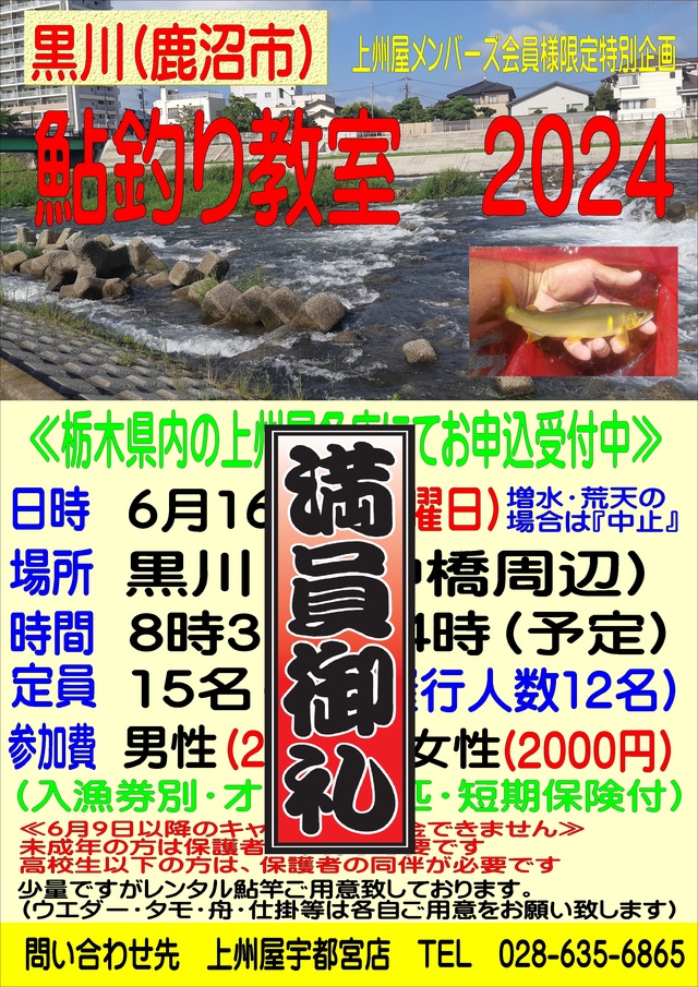 満員御礼【宇都宮店】栃木県「黒川(鹿沼市)」“鮎釣り教室2024”参加者募集!