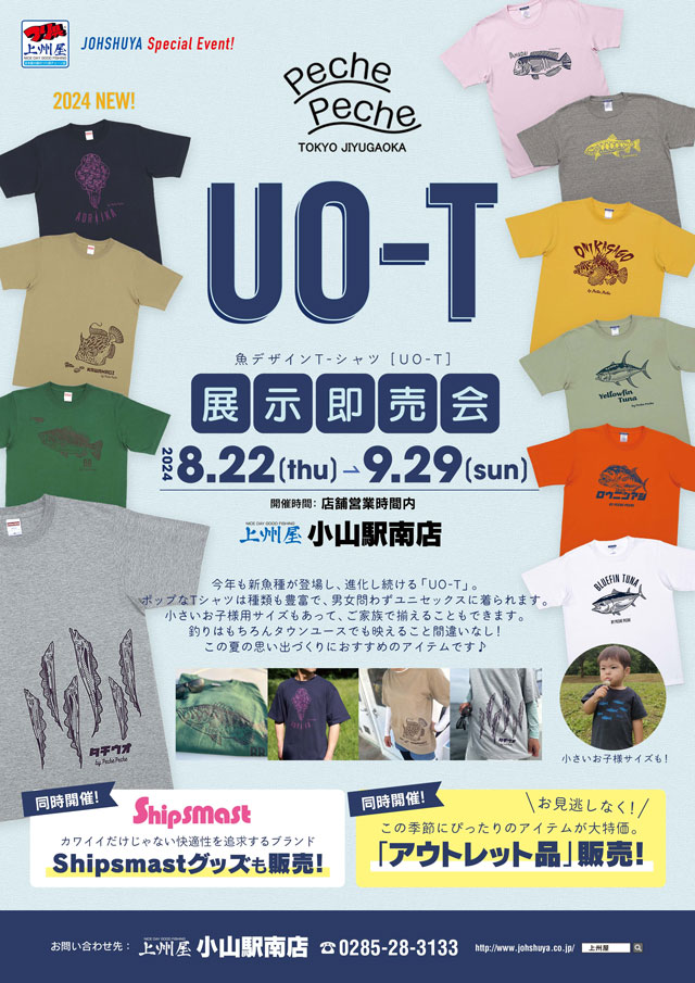 2023年8月22日(木)~9月29日(日)上州屋小山駅南店にて魚をデザインしたポップなTシャツ『UO-T』の展示即売会を開催します!