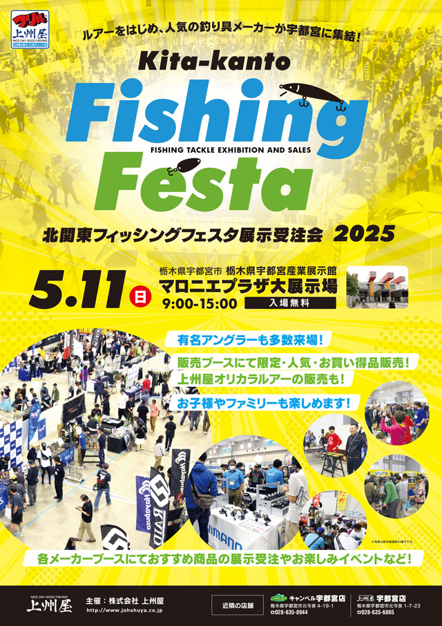 ルアーをはじめ、人気の釣り具メーカーが宇都宮に集結!有名アングラーも多数来場!入場無料にてお楽しみ頂ける釣りの一大イベントです!