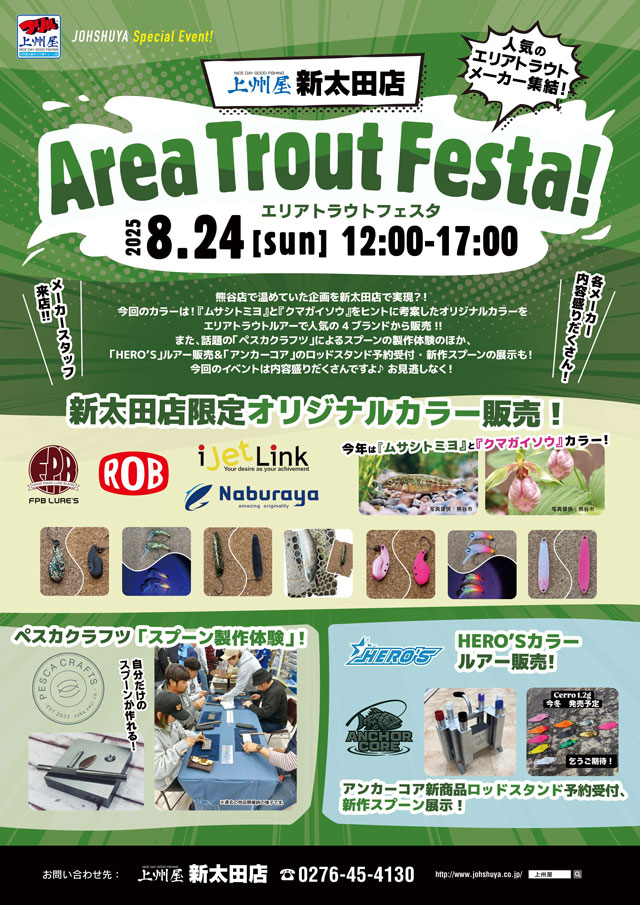 会場内、物販・即売コーナーでは、当日限りフェスタならではのレアモノ、上州屋オリカラ、アウトレットetc.様々な“限定商品”を特別販売致します!出展メーカーからの目玉品も続々登場予定!どうぞご期待下さい!