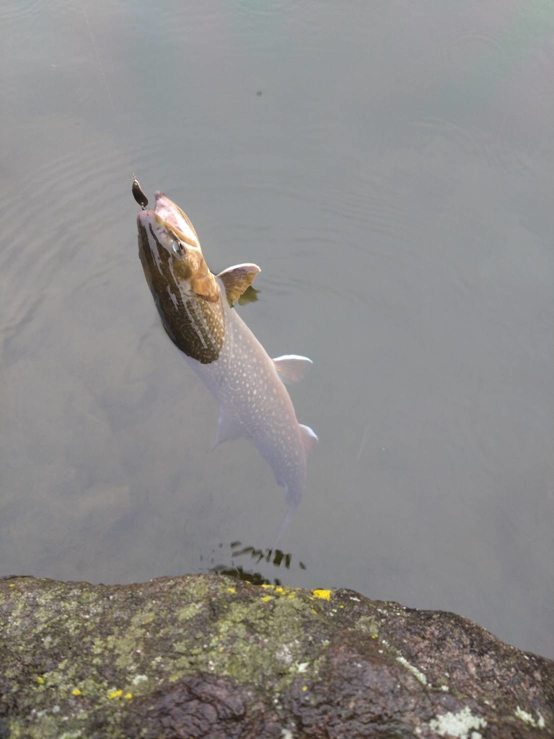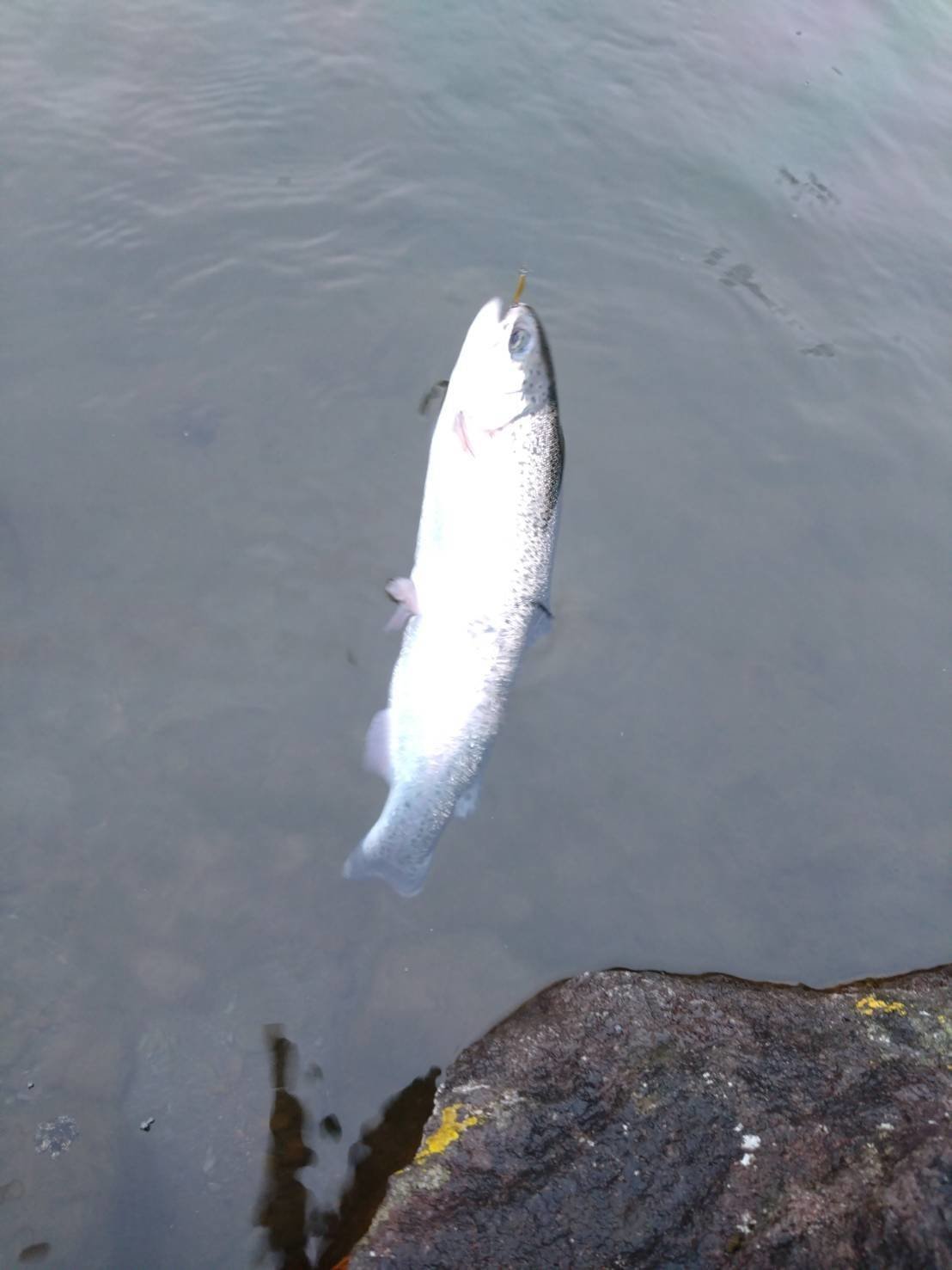 14日日曜日、午前に金曜の放流後がどんな感じかフックで様子見がてら釣りしていまし(^O^)/