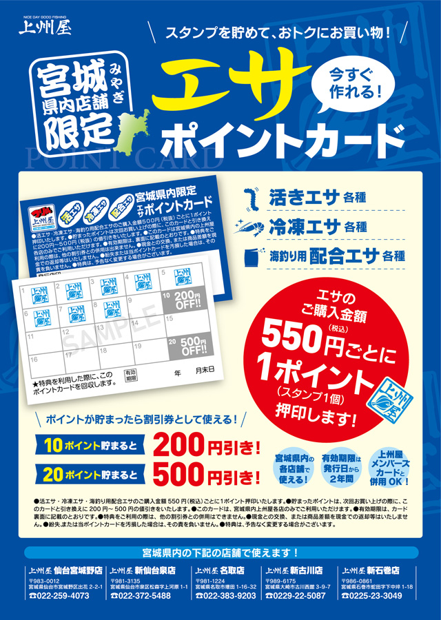 〔新つくば店限定〕次回の購入がお得になる、釣り…