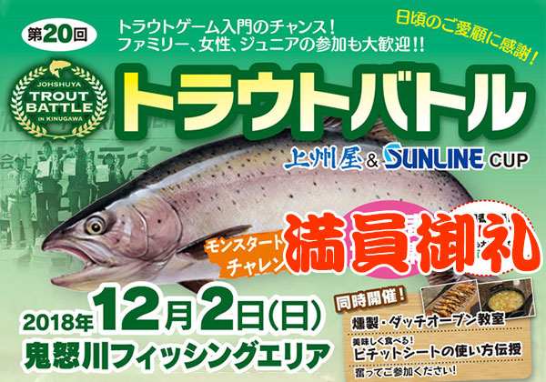 【結果レポート】12/2(日)開催、第20回トラウトバトル2018上州屋&SUNLINE CUP!