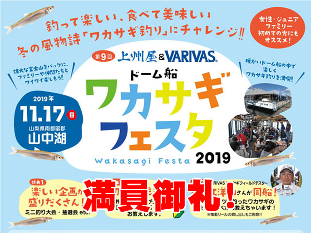 〔開催レポート〕11/17(日)上州屋&VARIVAS「ドーム船ワカサギフェスタ2019」!