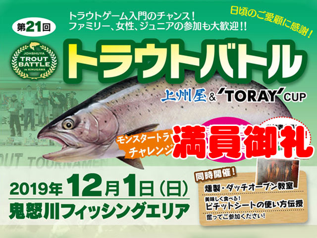 【結果レポート】12/1(日)開催、第21回トラウトバトル2019上州屋&SUNLINE CUP!