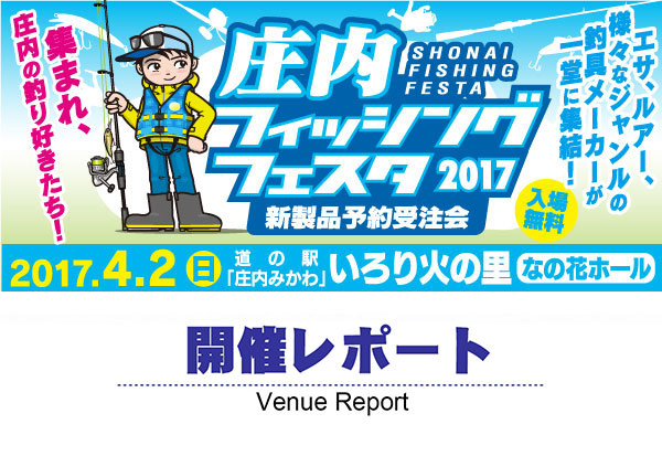 2017年4月2日(日)、山形県東田川郡三川町、道の駅「庄内みかわ」いろり火の里「なの花ホール」にルアーフィッシング、エサ釣り問わず様々なジャンルの釣具メーカーが集結!庄内フィッシングフェスタ2017新製品予約受注会が開催されました!2017年の最新釣具アイテムを多数展示、有名インストラクターや名人も来場するなど大いに盛り上がりました!
