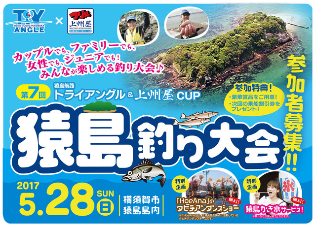 2017年5月28日(日)神奈川県横須賀市、東京湾最大の自然島、猿島にて第7回目となる「猿島航路トライアングル×上州屋、猿島釣り大会」を開催いたしました!猿島は横須賀市の三笠桟橋から船でわずか10分、首都圏から最も身近で手軽な自然島です!