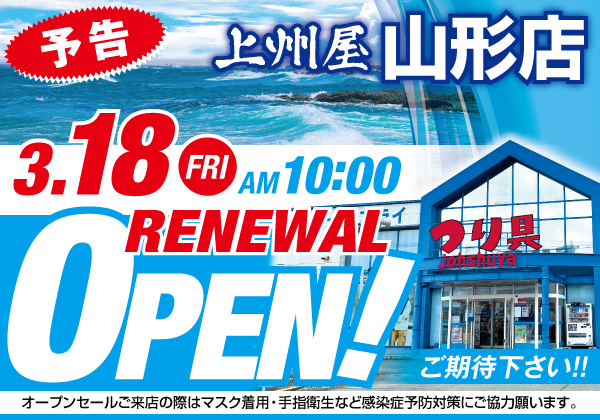 上州屋山形店、店舗改装による3/7(月)~11日間臨時休業および3/18(金)リニューアルオープンのお知らせ。