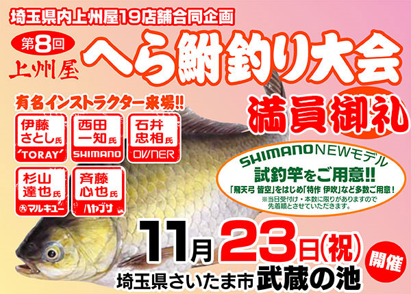 〔開催レポート〕11/23(祝)埼玉県内上州屋合同企画「第8回上州屋へら鮒釣り大会」!