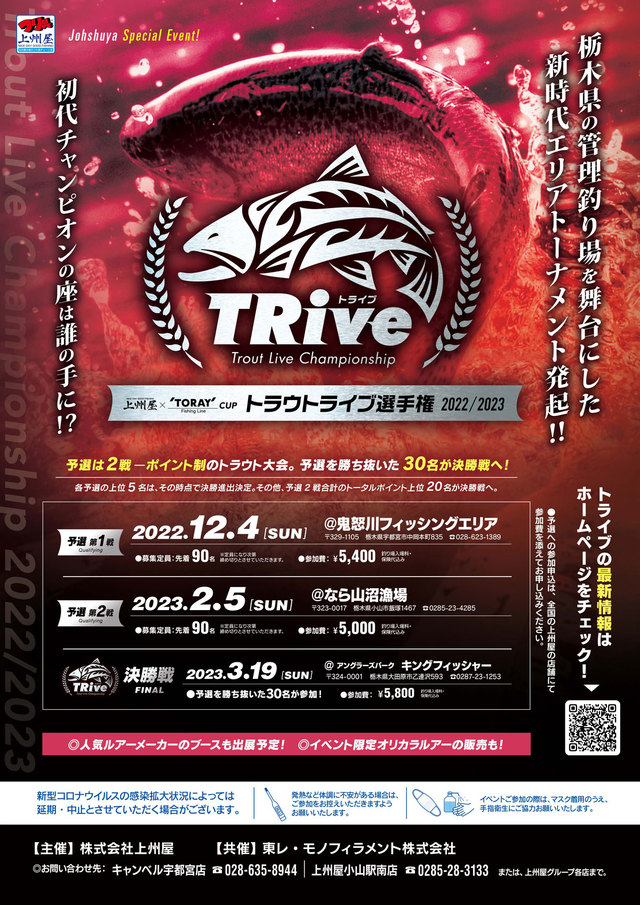 トラウトライブ選手権は、予選2戦&決勝で競う全3戦。2022年12月に予選第1戦、翌23年2月に予選第2戦、同年3月に決勝大会を開催。