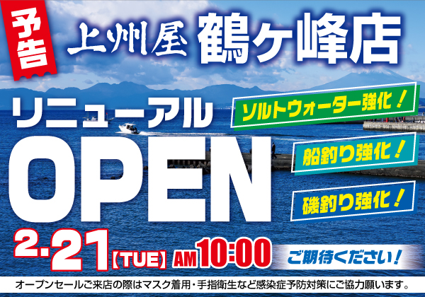 この度、上州屋鶴ヶ峰店は2023年2月21日(火)店内品揃えを強化しリニューアルオープンさせて頂くことになりました。