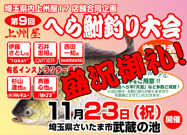 〔開催レポート〕11/23(祝)埼玉県内上州屋合同企画「第9回上州屋へら鮒釣り大会」!