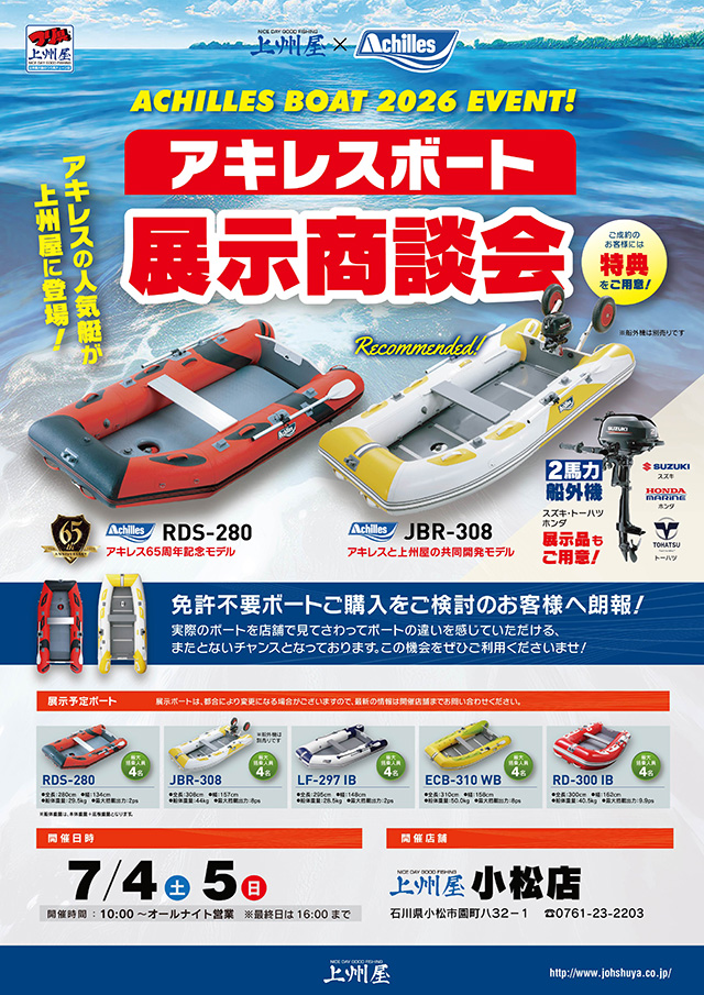 【小松店】アキレス2026免許不要ボート“店頭…