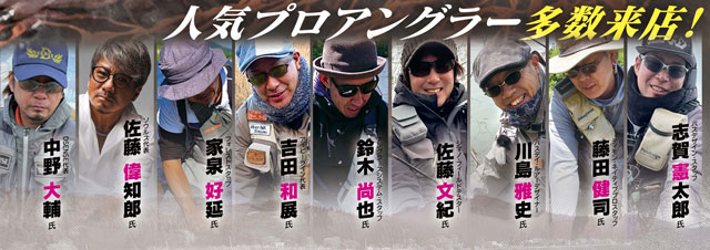 さらに今回イベントには[DSENSE]中野大輔さん、[SOULS]佐藤偉知郎さん、[FOREST]家泉好延さん、[IVYLINE]吉田和展さん、[ANGLERZSYSTEM]鈴木尚也さん、[PRO'S ONE]佐藤文紀さん、[BASSDAY]川島雅史さん、[TIMON]藤田健司さん、[PAZDESIGN]志賀憲太郎さん(※順不同)など、9名のプロアングラーが来店&ブース常駐!