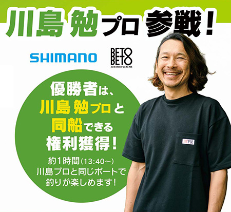 さらに優勝者は川島プロと一緒に同船・釣行できる「同船釣りタイム」の権利獲得!大会当日13:40~14:40が川島プロとの同船・釣行タイムとなります!