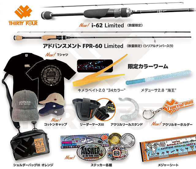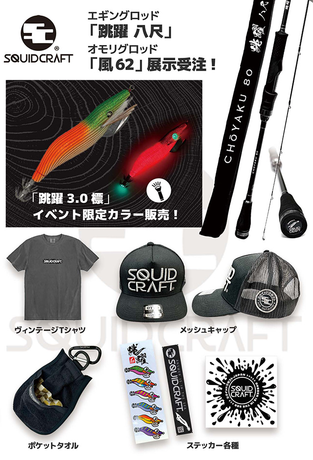 今回イベントにて34製ロッド購入のお客様にピンキー0.25号プレゼント!また、34&SQUID CRAFT対象製品を3,000円(税込)以上お買い上げでオリジナルグッズが当たる「ガラポン抽選会」にチャレンジ!