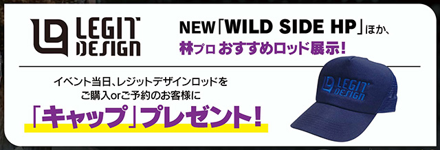 林晃大プロといえば、野尻湖の爆釣メソッド「シャッドキャロ」「リアクションダウンショット」の第一人者!林プロ監修の2026年新製品ワイルドサイドHP WHPS59Lも展示、ロッドの特徴を直接解説してもらえます!
