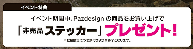 イベント期間中、パズデザイン商品をお買い上げで「非売品ステッカー」プレゼント