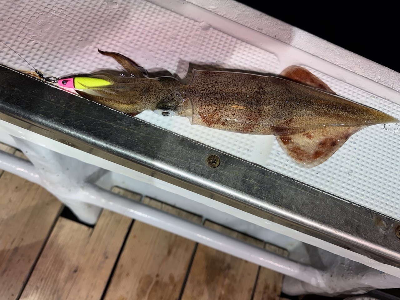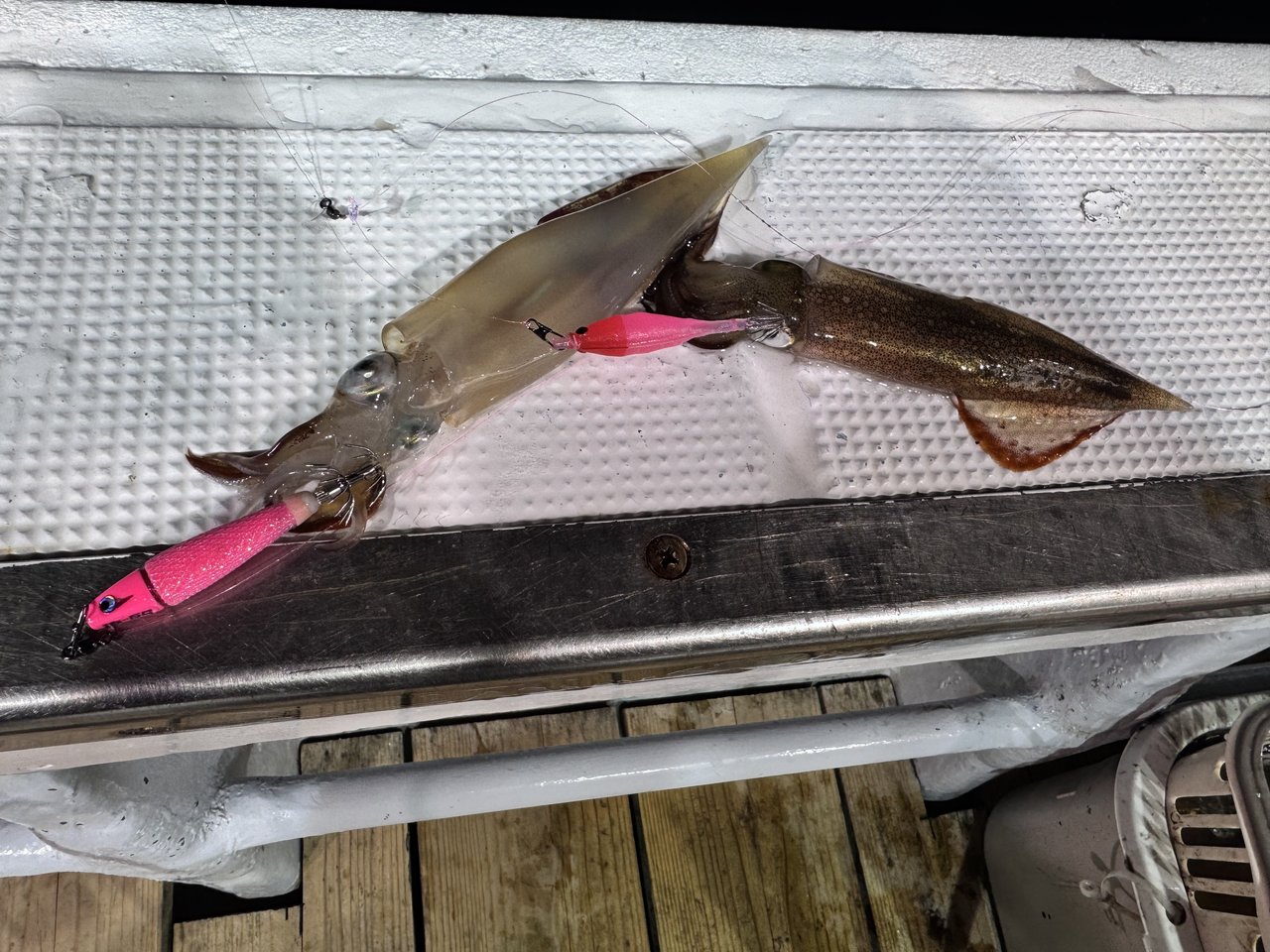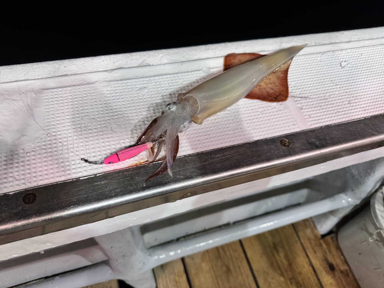 釜石花露辺港荒神丸にてヤリイカへ行って来ました。4時出船、60mのポイントに投錨しスタート、ライトが点いてから本格的に釣れ始まりアタリが遠い時間もありましたが、コンスタントに最後まで釣れ続けます。サイズのいいヤリイカも混じり数も釣れています、自分は50杯でしたがトップは70杯超えでした。いよいよヤリイカシーズン本格スタートです!