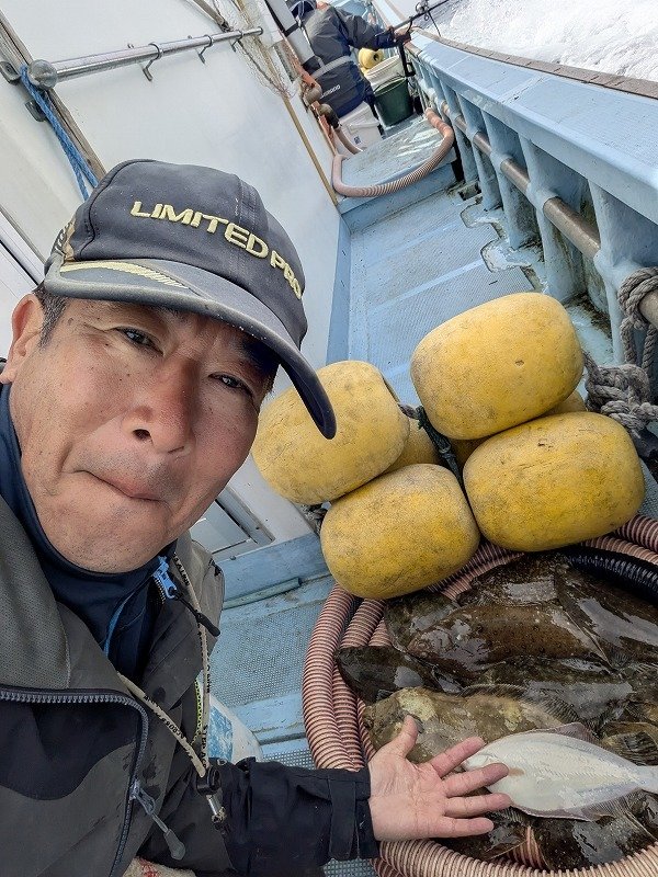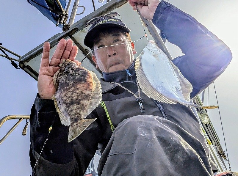 この日はちょこっと海水温が下がったらしく、カレイの食いつきもちょっとナイーブ感・・それでも魚影が濃く、だいぶかたまった群れが入って来ているおかげで船中つねに誰かが釣れている状態!