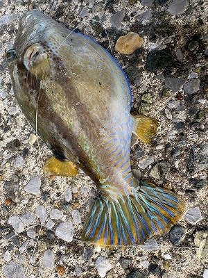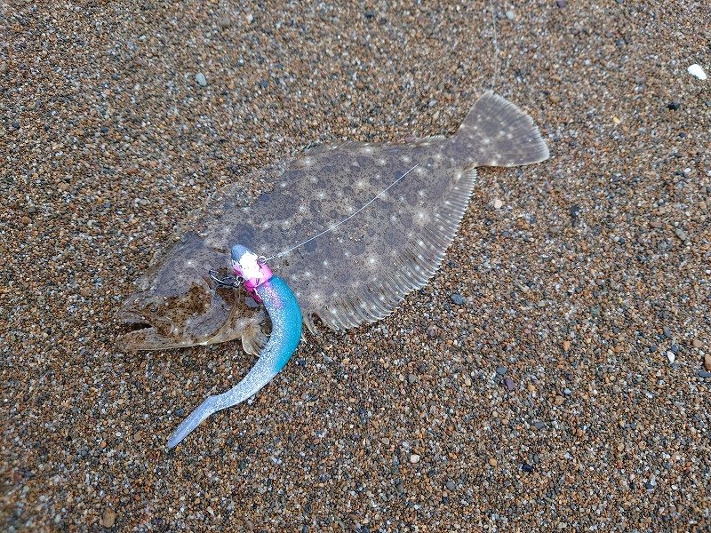 その後は青物狙いにアタリが無く、フラット狙いに切り替えるとソゲが4ヒット2キャッチ。近くで釣られていた方もソゲは釣れたそうです。