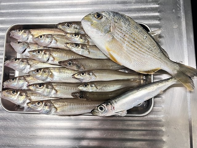 その後時合いに入り、16~20㎝くらいのキスがダブルヒットするなどの入れ食い状態、、