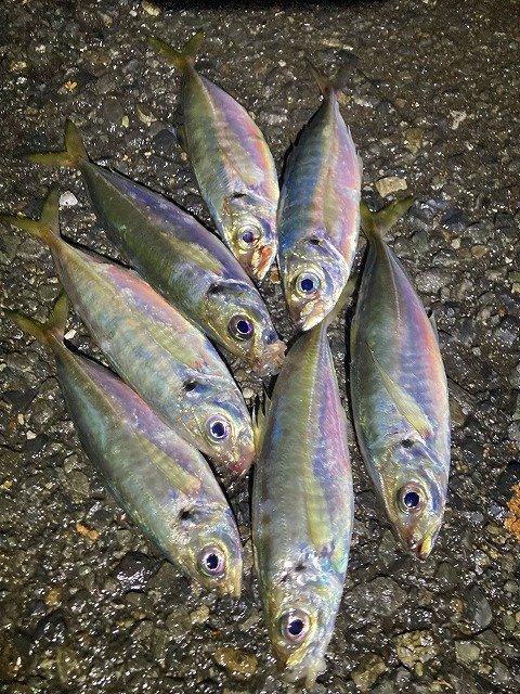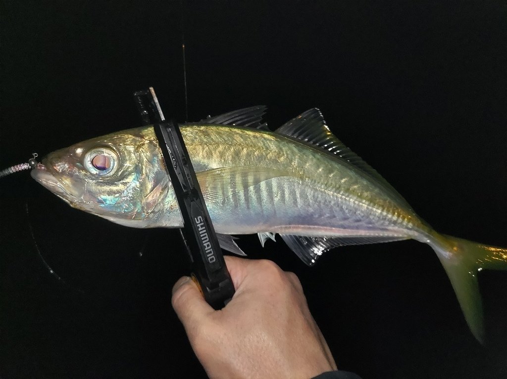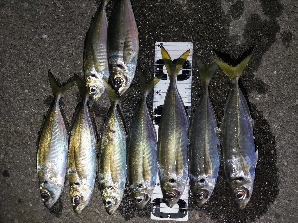 実は遠征も二連敗!参戦目も真っ暗くなってもサッパリ。近くで尺クラスが上がり粘りますが気配無く移動。今回もボウズかと思いましたが、移動先は魚っ気アリ!しかも足元にアジっぽい魚影。そして足元から33cm!周りにも魚っ気はありいろいろ投げても釣れるのは足元周辺でした。キャッチは9匹だけでしたが、7匹が尺アジ!30、31、32,33,34,35cmとデカ過ぎでした!秋田はまだまとまった数釣れた話は聞いていませんが、スタートの時期は回遊当たればスペシャルな群れに出会えます。