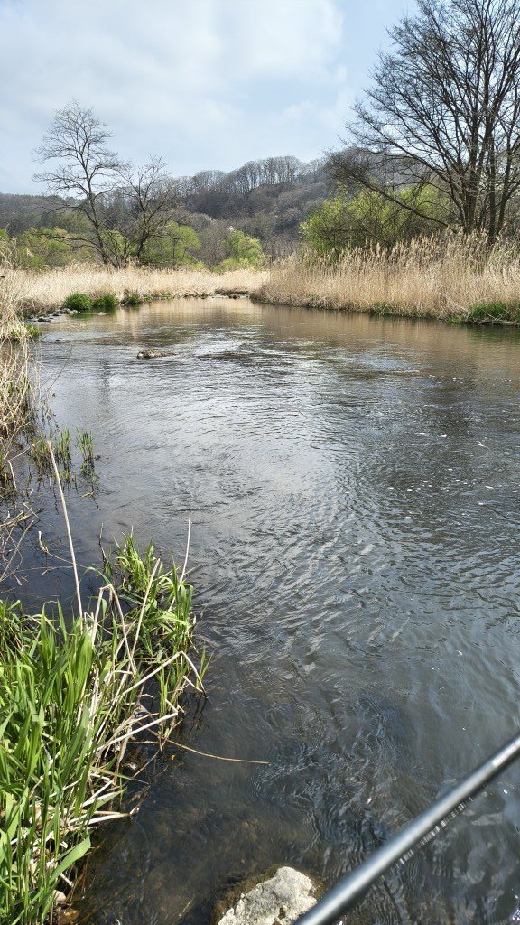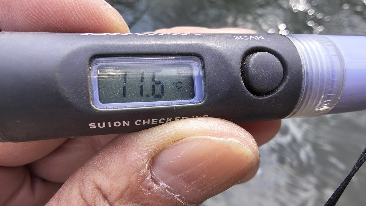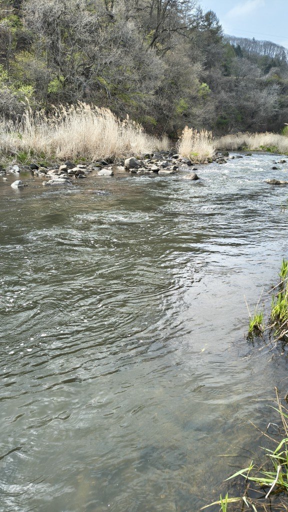 春は一番気温が高い時に渓流に行くのがセオリーですが、15:00の気温14℃、風が強く半袖では寒いぐらいの陽気でした、水温は11.6℃とチョット低めでした、下流から上流に向けて釣り上がるもダウンの風が強くキャストもままならない状態、発電所ぐらいまで釣り上がるもノーバイトでした。