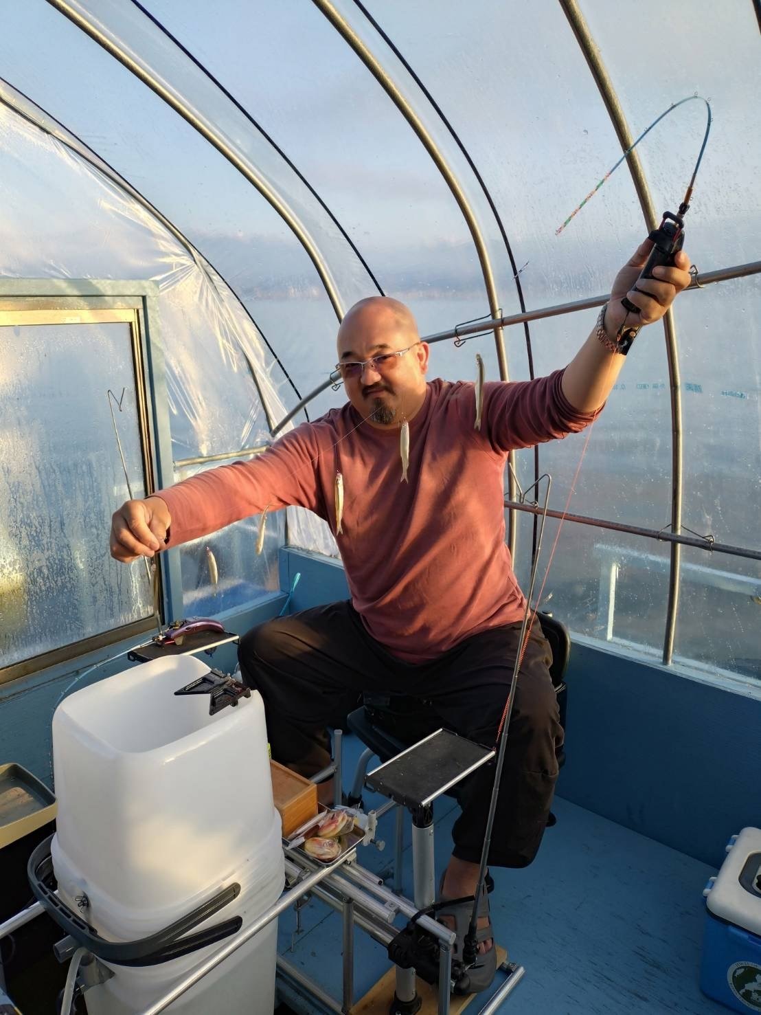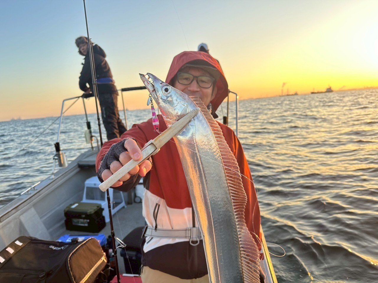 船中初HITは当店の高橋副店長のブレード系に良型タチウオがHITのGETT!!!