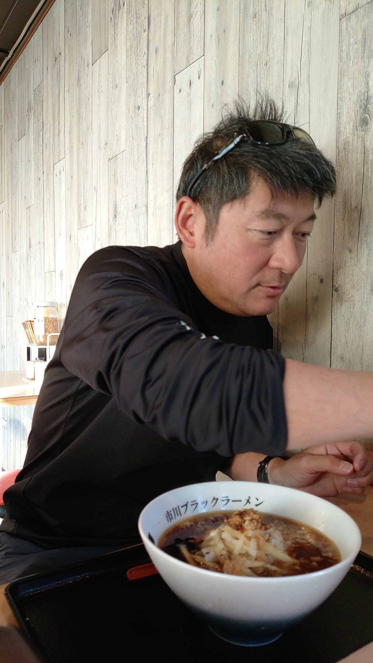 前回はスープ切れで殺れなかったのでリベンジ市川ブラックラーメン出来て最高旨旨旨しでありました!!!