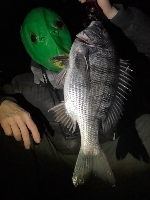 さあ着いた…ヘッドライトが無い…さすがにきついので取りに帰ります。3時間くらいの釣り予定なのでこの時間のロスは痛い…。と、30分以上無駄にしてしまいましたが気を取り直してカニを投入、一投、二投、…一時間経過…反応なし。年末の最後の釣行はアタリ貰えずだったので嫌な予感がしましたが、探り歩いたその先に、いました、可愛いサイズながら今年の初クロダイ。サイズうんぬんで嬉しい&ホッとします。が、続きません。ようやく2匹目をあげたところでタイムアップとなりました。サイズ・数は満足いきませんが、とりあえず初釣りで釣れてよかったですぅ。