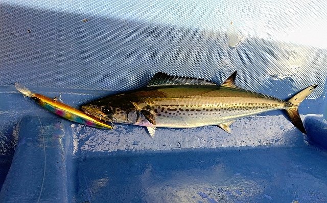 しばらくして、ワカシは以外の魚も狙えないかと、スロー系のメタルジグで底物狙いに変更したところ、スローフォールが今回のワカシのヒットパターンにハマってしまい、底を取れないくらいの入れ食い状態になってしまった為断念し、9時頃に納竿しました。