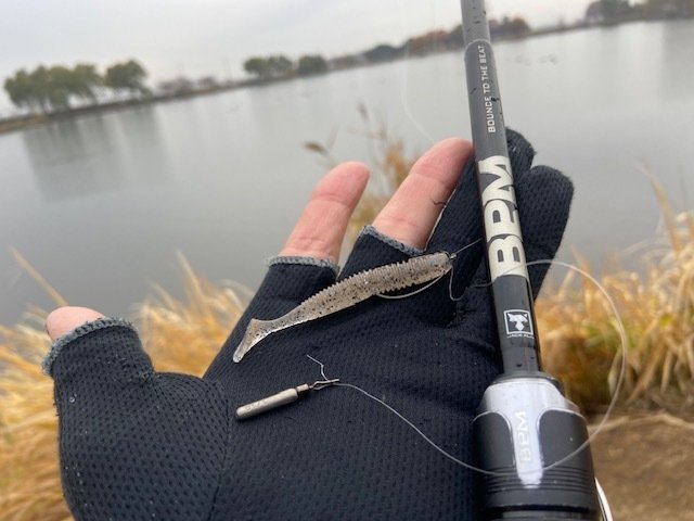当日は冷たい雨が降る難しい状況でしたが、HPシャッドテール2.5"やドライブシュリンプ3"のダウンショットリグ、ハイカット、ダンクなどを使い、参加者全体で6本キャッチすることができました!
