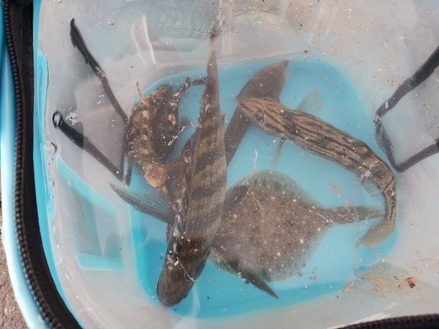 朝7時頃から2時間の釣果!根魚釣り仕掛け2本針で、堤防の際やチョイ投げでの釣果です^^