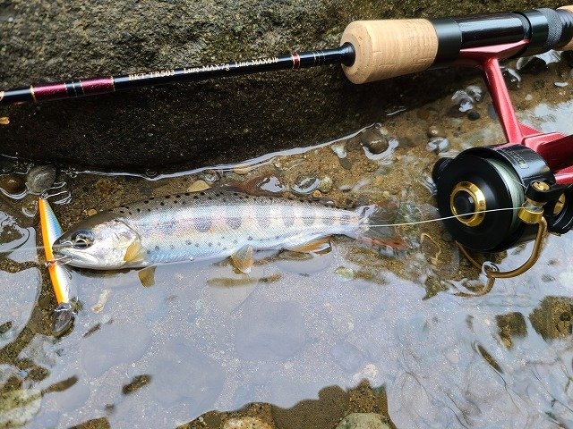 流石は激戦区で魚はかなりナーバスで、小型のアマゴを何とか釣るもサイズが伸びないので早々に撤収。