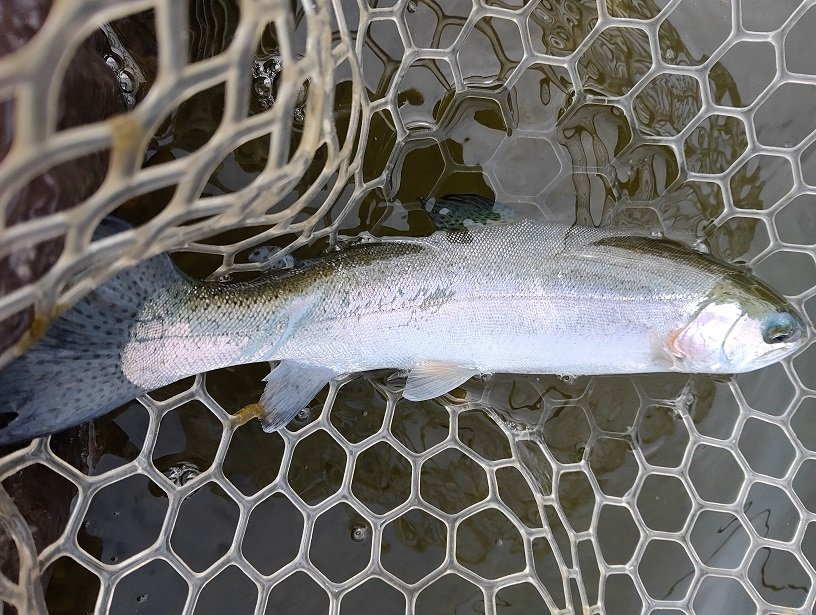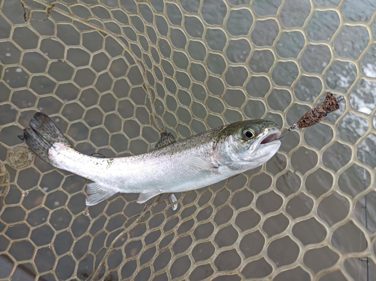 2月26日スタッフ永田が当店近隣の人気管理釣り場「フィッシュオン!王禅寺」さんに、1カ月ぶりに行ってきました~。大物狙いのジロー池にエントリーし、前日の冷え込みと終日の冷たい雨でトラウトの活性は低いと考え、ボトム狙いからスタート。最近調子の良かったボトム狙いもトロロ藻のようなゴミが毎投ルアーに引っ掛かり釣りにならず・・・諦めずにキャストを繰り返すとボトムバイブでようやくヒット!その後もボトム付近の深めのレンジを中心に探るが反応が薄く、アタリも遠い・・・。その内風の止むタイミングで魚のライズを発見!トップに切り替えると1投目からヒット!ボトムよりもはるかに魚からの反応も多く、そこから連発!バイトシーンも丸見えで楽しむ事ができました。しかし、今回も残念ながら大物「富士の介」ゲットならず。周りの上手なアングラーの大型とのファイトは多数目撃しましたので、あきらめずにまたチャレンジしたいと思います。当店ではエリアトラウトルアー続々入荷中です。ぜひ釣行ご準備にお立ち寄りくださいませ。お待ちしております。