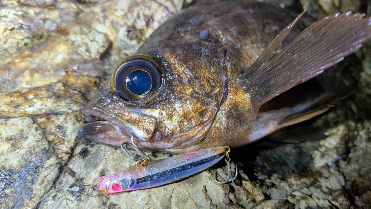 「久しぶりに三浦南東部の磯へ。これまで余りやらなかった立ち位置で狙って見ると、バイトは小さいながら良型のアカメバル主体に6バイト4キャッチ!!パンチライン45が効きました!」