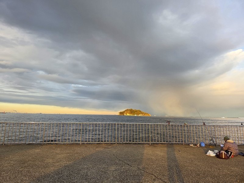 【横須賀うみかぜ公園】横岸壁最新釣果情報です。釣果を伺いながら公園の清掃に行って来ました。本日は冷え込みが厳しい中でも負けずに元気に竿を出している方が10名程伺った時間帯にいらっしゃいました。日没からのアジ狙いの方や胴突き仕掛で垂らし釣りの方が目立ちました。