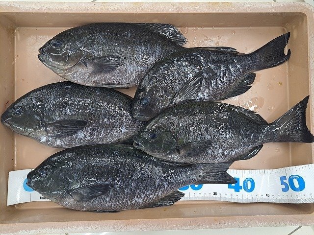 ■ルアー・仕掛け:オモリ)9g 仕掛け)袖1.5号7本針+下針 エサ)紅チーズサシ(寄せでブドウ虫)