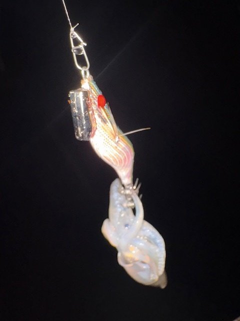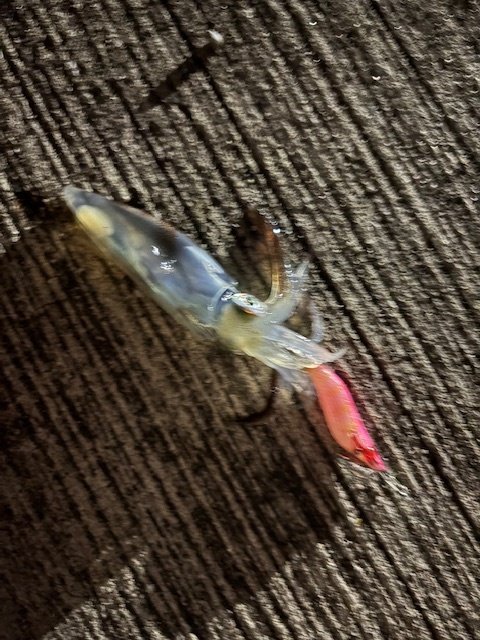 前回いてもたってもいられず1時間のみの釣行決行も3杯とイマイチだったので、今日も短時間ながら行ってきました。買ったばかりのナオリー「軍艦グリーン」を早速投げ続ける事10分…、15分…、あれ?ダメかなと思った頃ようやくニュイッとたまらんあたりで釣ると、すぐに2杯追加。その後は色々エギを変えながら頑張るも1時間で3杯追加止まり。かなり爆ってる状況もあるので、今日もイマイチな結果でした。買ったばかりの軍艦グリーンもロストしてしまいました。近年まれにみるアタリ年ではないかと思いますので、ぜひまだ未経験の方はチャレンジしてみて下さい。