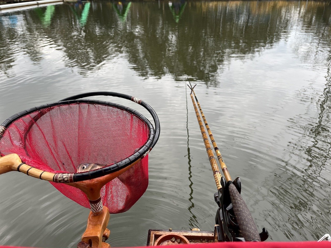 ■ロッド:9尺 ■ライン:道糸0.6号 ハリス0.2 ■仕掛け:ウキ自作のグラストップ浅ダナ抜き用 ■エサ:粒戦・爆麩・ふぶき
