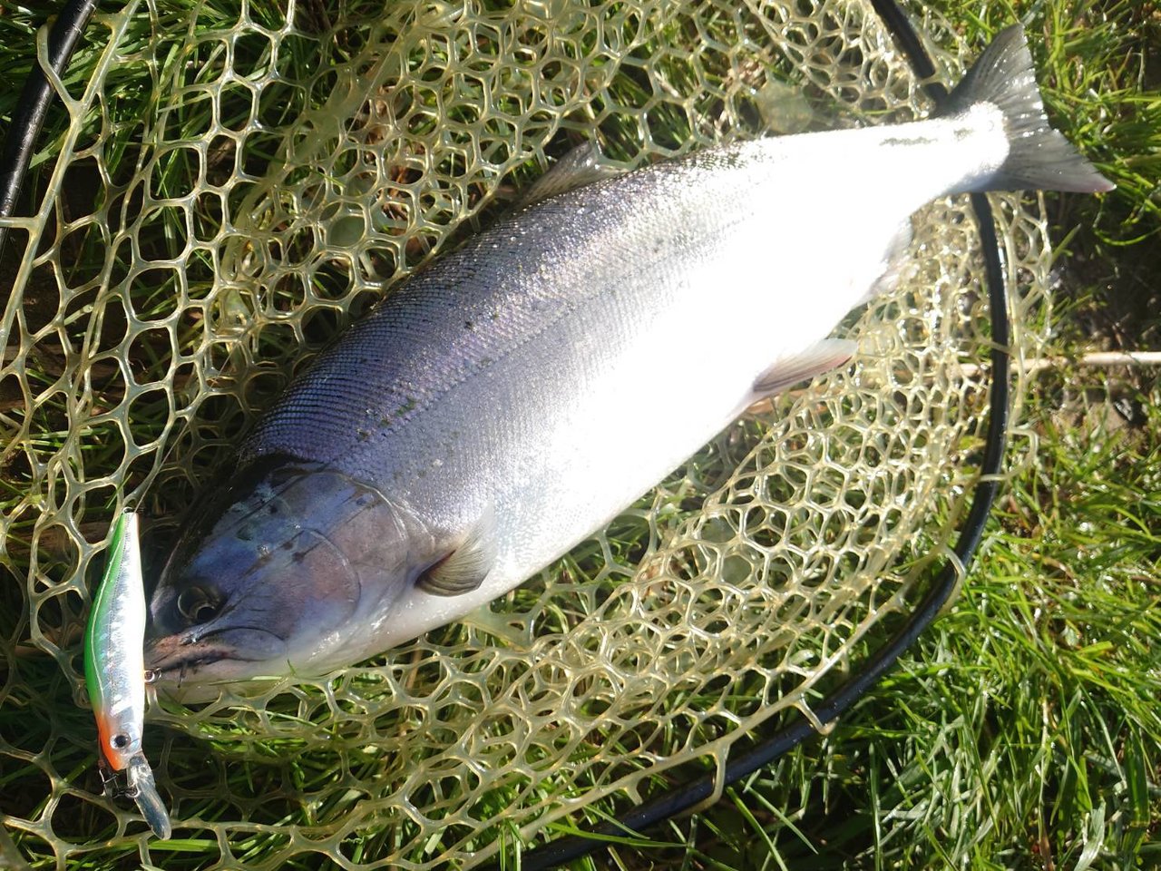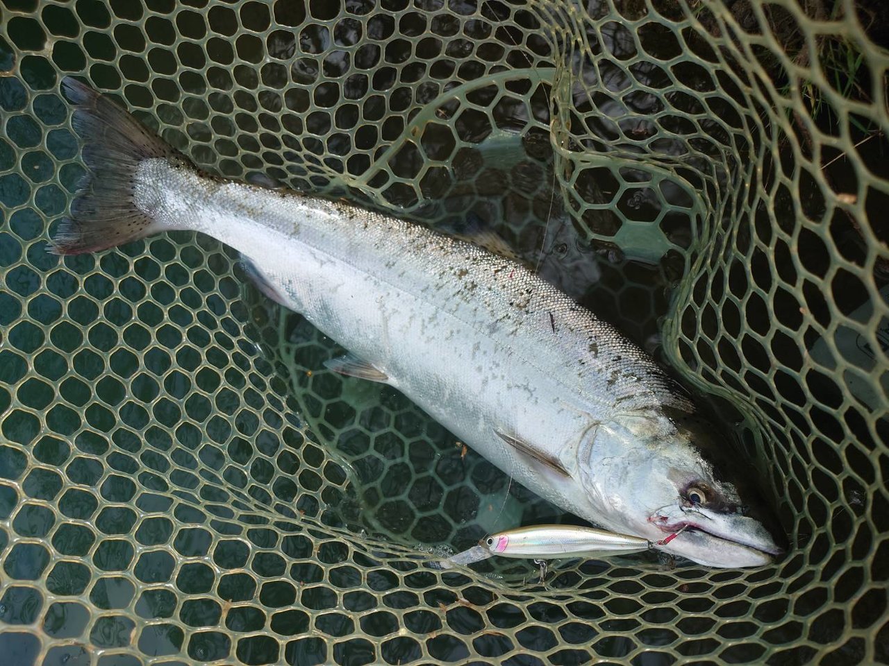 ■ロッド:サクラマスロッド8.8ft ■リール:4000XG ■ライン:GOSEN PE1.2号+DUELピンクフロロ5号 ■ルアー:タックルハウス・ビットストリームヴァンテージDMD93 ティムコ・シュマリ90MD ソウルズ・ナムサン11