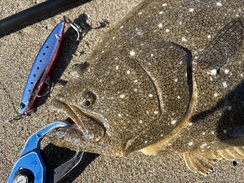 干潮のタイミングで朝マズメに攻めた離岸流を攻め直してみた所、運良くヒラメを釣る事が出来ました(^^)/