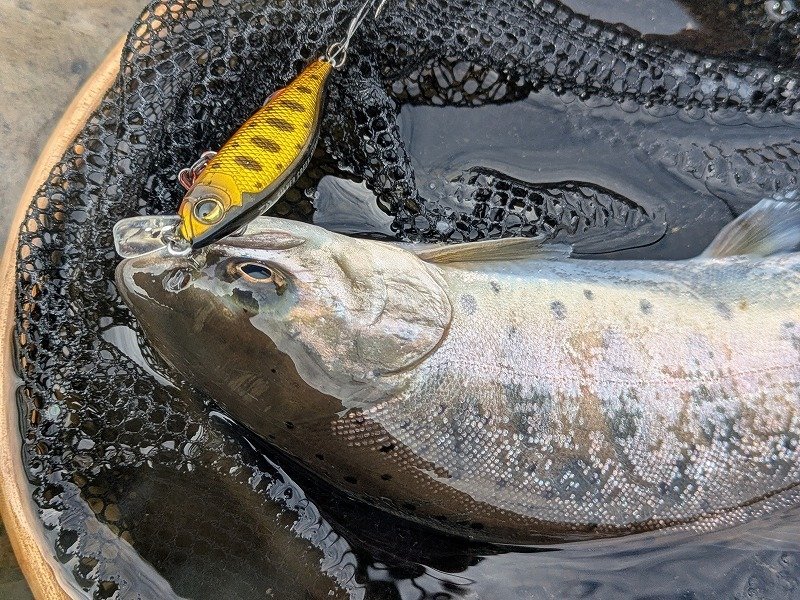 2人とも人気のブランド魚『富士の介』はヒットしませんでしたが、ブラウントラウト、ニジマス、イワナなどをの顔も見る事が出来て、天候も良くのんびりと管釣りトラウトを楽しみましたよ♪